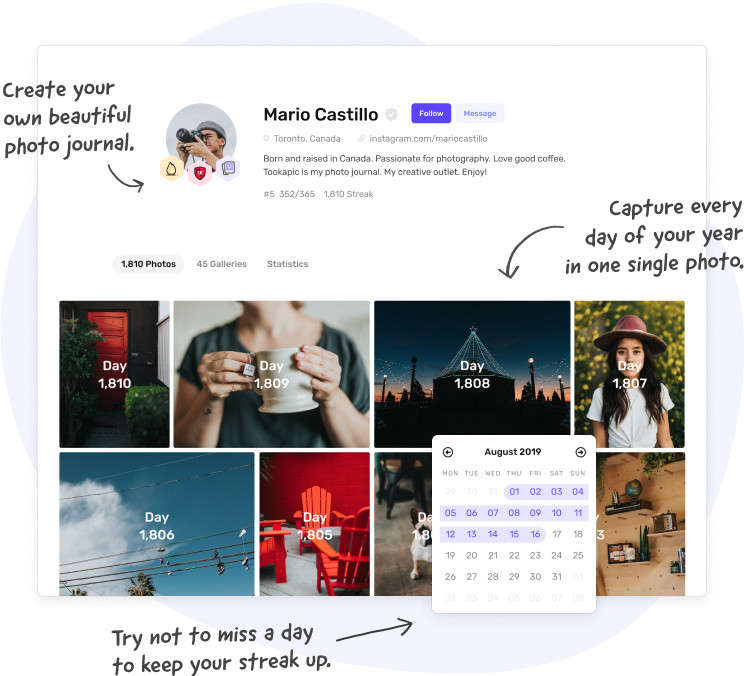 That’s it. 365 days. It’s all a year is. Are you saying you can’t take 365 photos? Can’t take one photo a day? Come on.